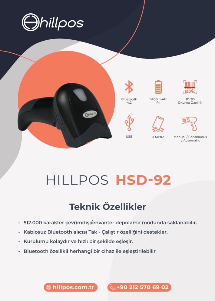Hillpos HSD-92, modern işletmelerin barkod okuma ihtiyaçlarını karşılamak için tasarlanmış yenilikçi bir cihazdır. Ergonomik tasarımı ve gelişmiş özellikleriyle dikkat çeken HSD-92, hem 1D hem de 2D barkodları hızlı ve doğru bir şekilde okuyabilir.