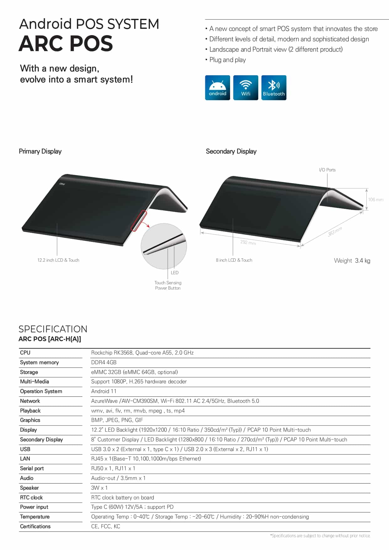 Wi-Fi 802.11 AC ve Bluetooth 5.0 kablosuz bağlantı özellikleri, çeşitli USB portları, LAN ve seri portlar ile geniş bağlantı seçenekleri sunan ARC POS, çevre birimleriyle sorunsuz entegrasyon sağlar.