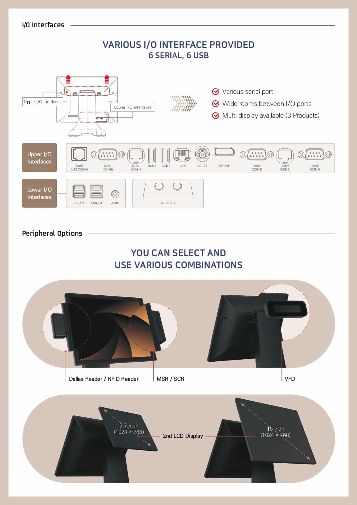 15 inç ana ekranı ve opsiyonel 9.7 inç veya 15 inç ikincil ekranı ile esnek görüntüleme seçenekleri sunar. Cam dokunmatik panel teknolojisi, uzun süreli kullanımda bile yüksek netlik ve düşük yorgunluk sağlar.