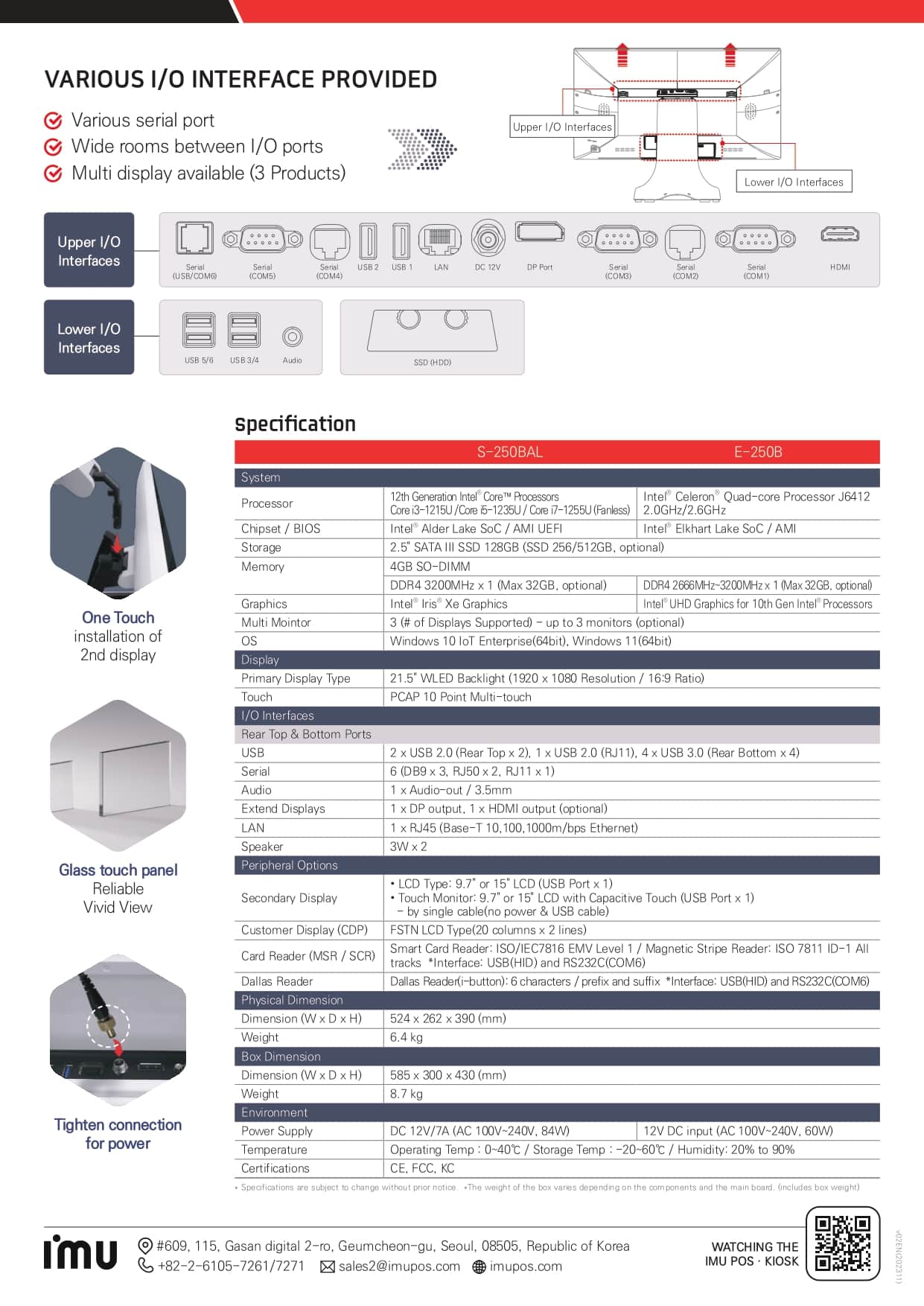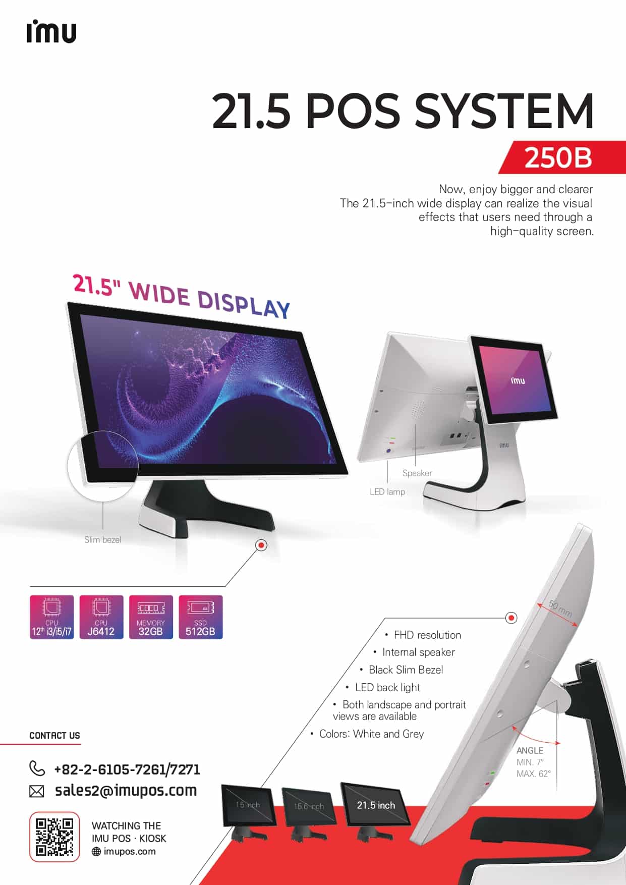 IMU 250B 21.5″ POS Sistemi, modern işletmeler için tasarlanmış geniş ekranlı, yüksek performanslı bir all-in-one POS terminalidir. 21.5 inç Full HD geniş ekranı ile öne çıkan bu sistem, kullanıcılara daha büyük ve net bir görüntüleme deneyimi sunar.