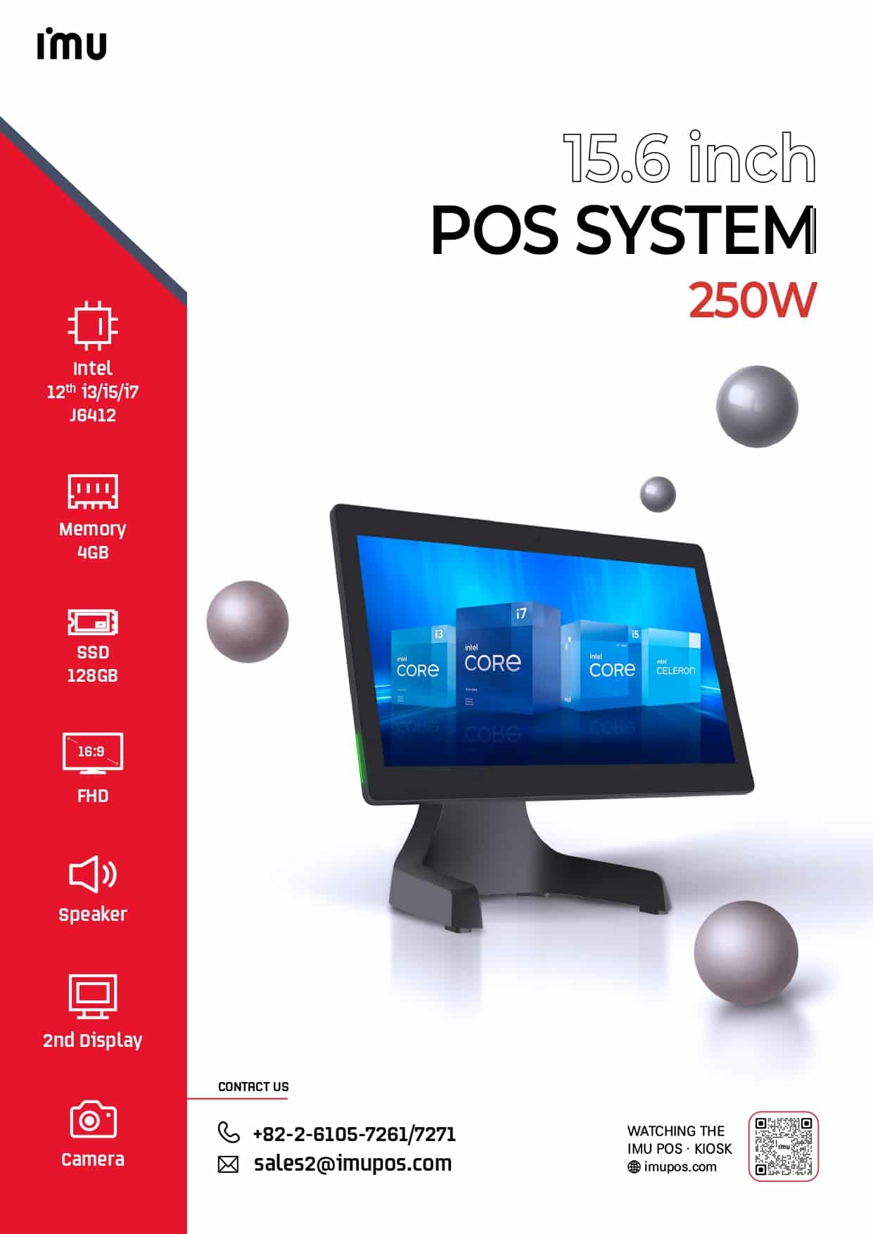 IMU 250W 15.6″ POS Sistemi, modern işletmeler için tasarlanmış kompakt ve yüksek performanslı bir all-in-one POS terminalidir. 15.6 inç Full HD geniş ekranı ile öne çıkan bu sistem, kullanıcılara net ve canlı bir görüntüleme deneyimi sunar.