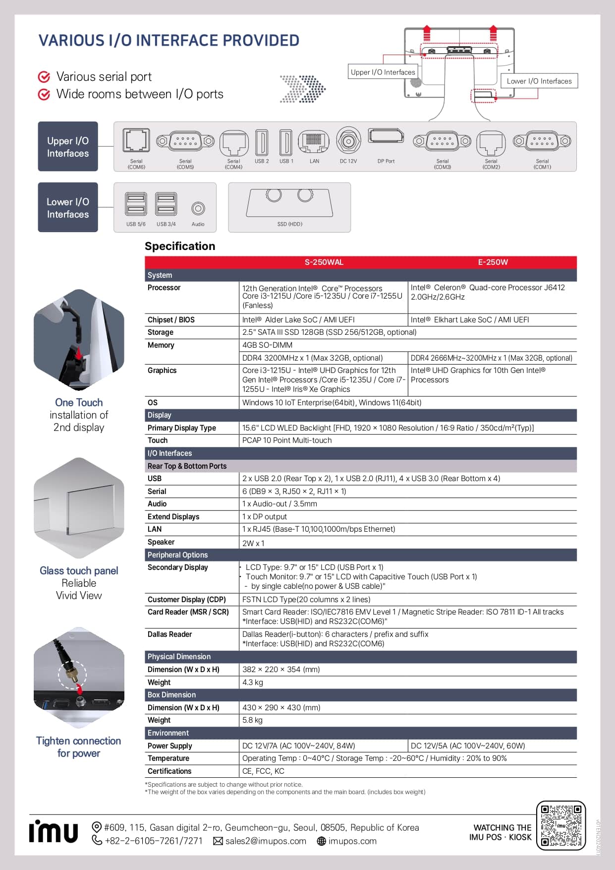 Geniş bağlantı seçenekleri sunan IMU 250W, 6 seri port, 6 USB portu ve DisplayPort çıkışı ile çeşitli çevre birimlerini destekler. Tek dokunuşla ikinci ekran kurulumu özelliği, kullanım kolaylığını artırır.